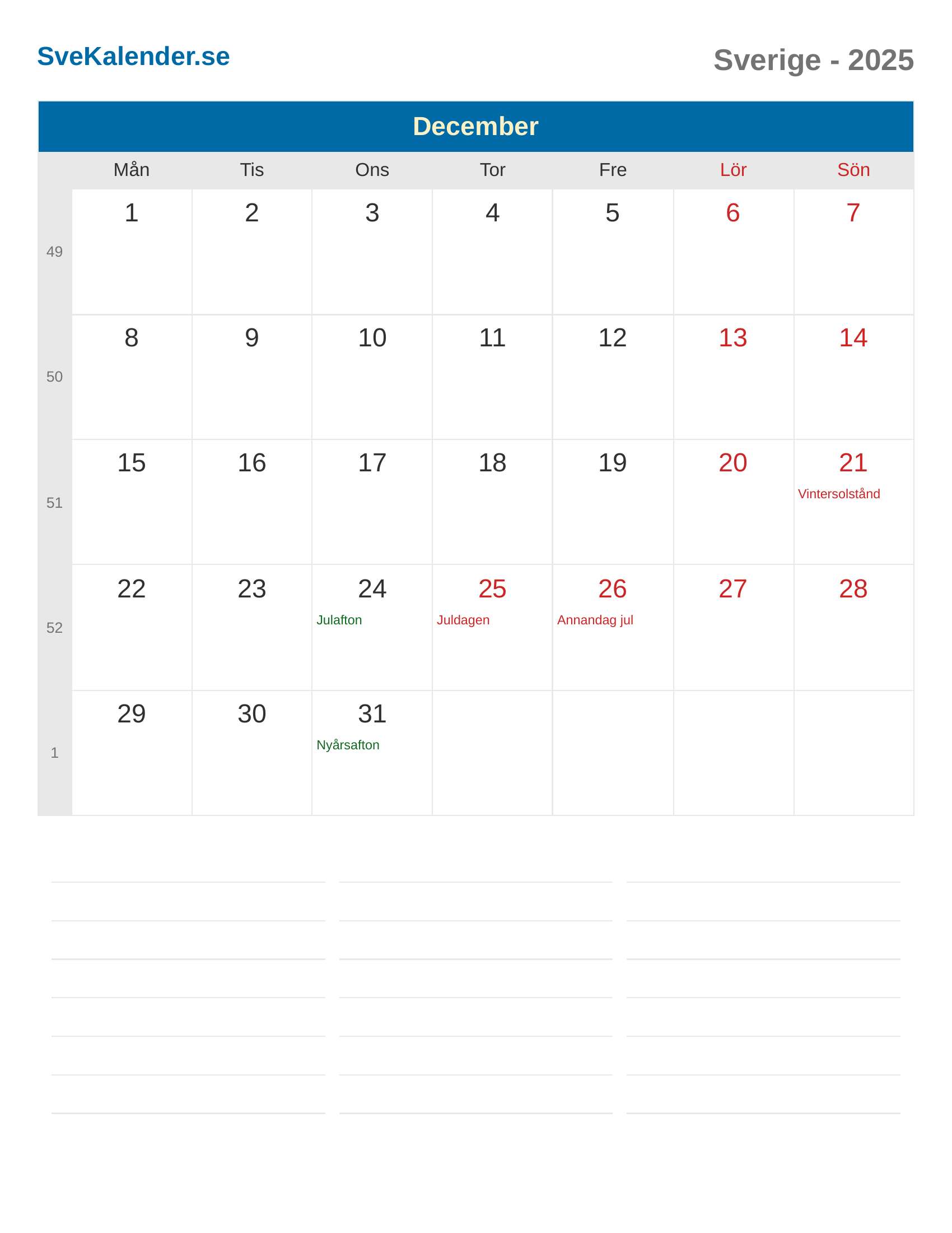 December 2025 kalender - Sverige