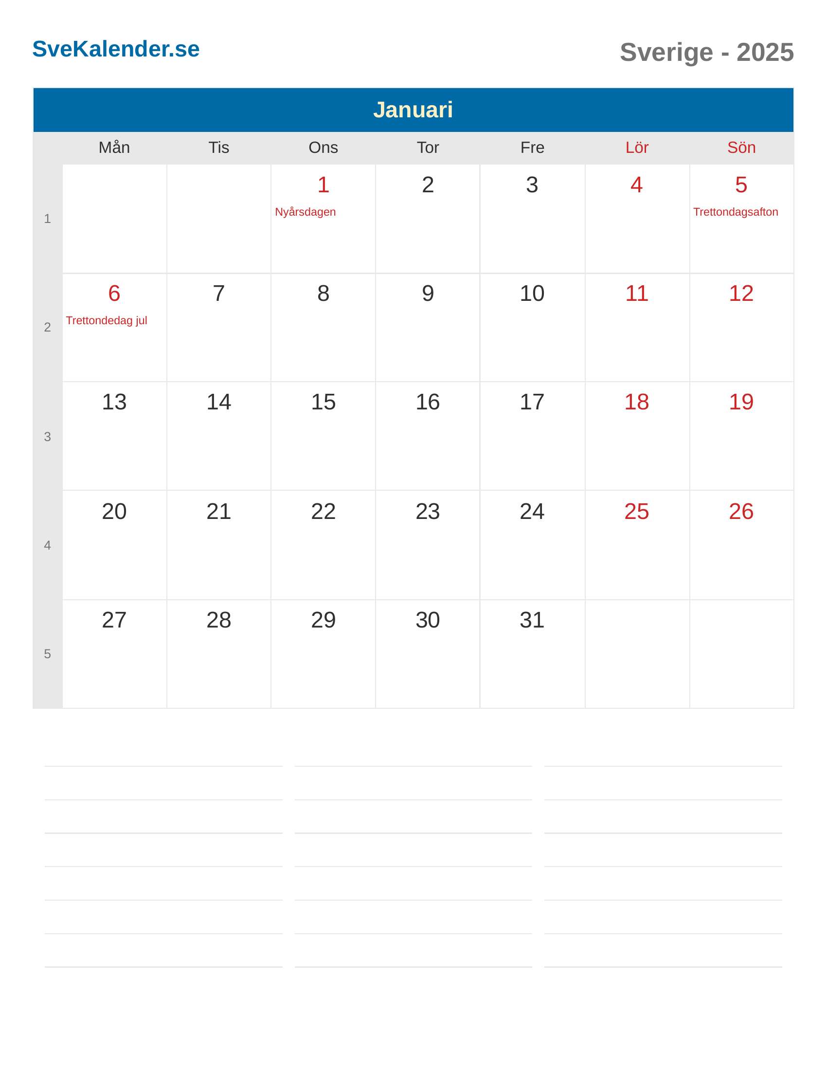 Januari 2025 kalender - Sverige