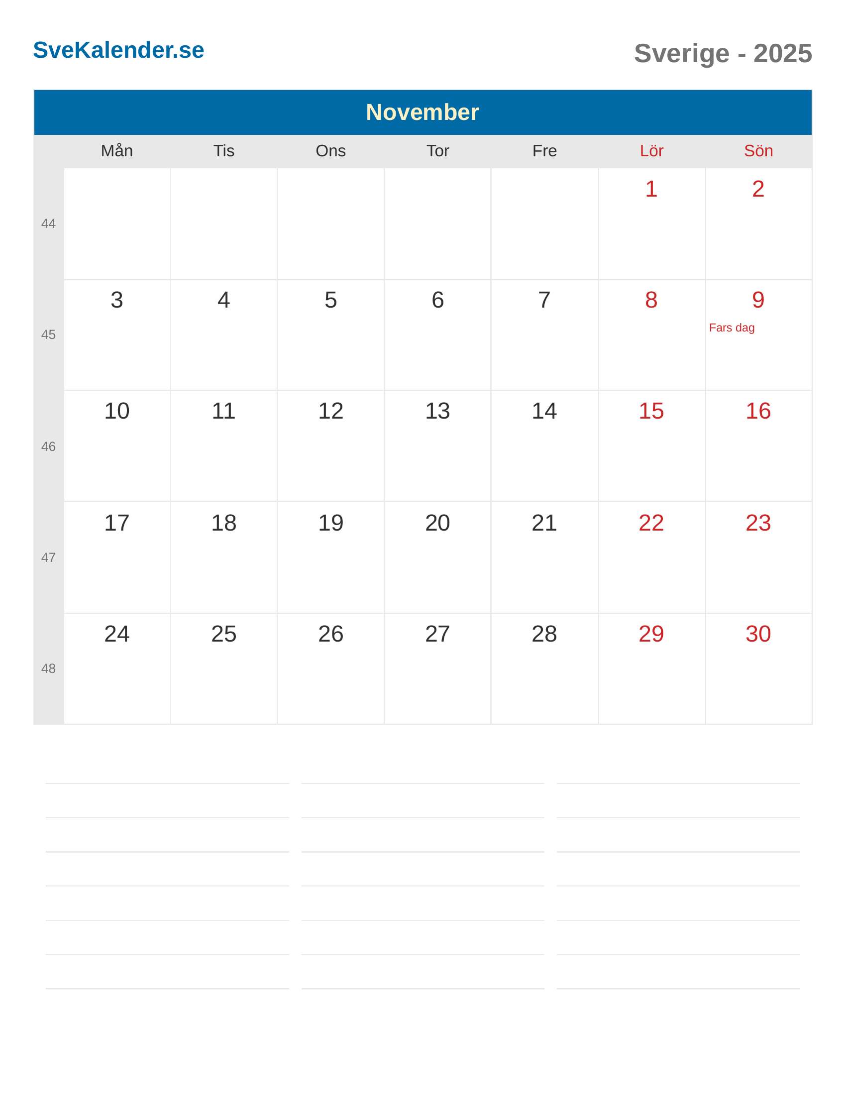 November 2025 kalender - Sverige