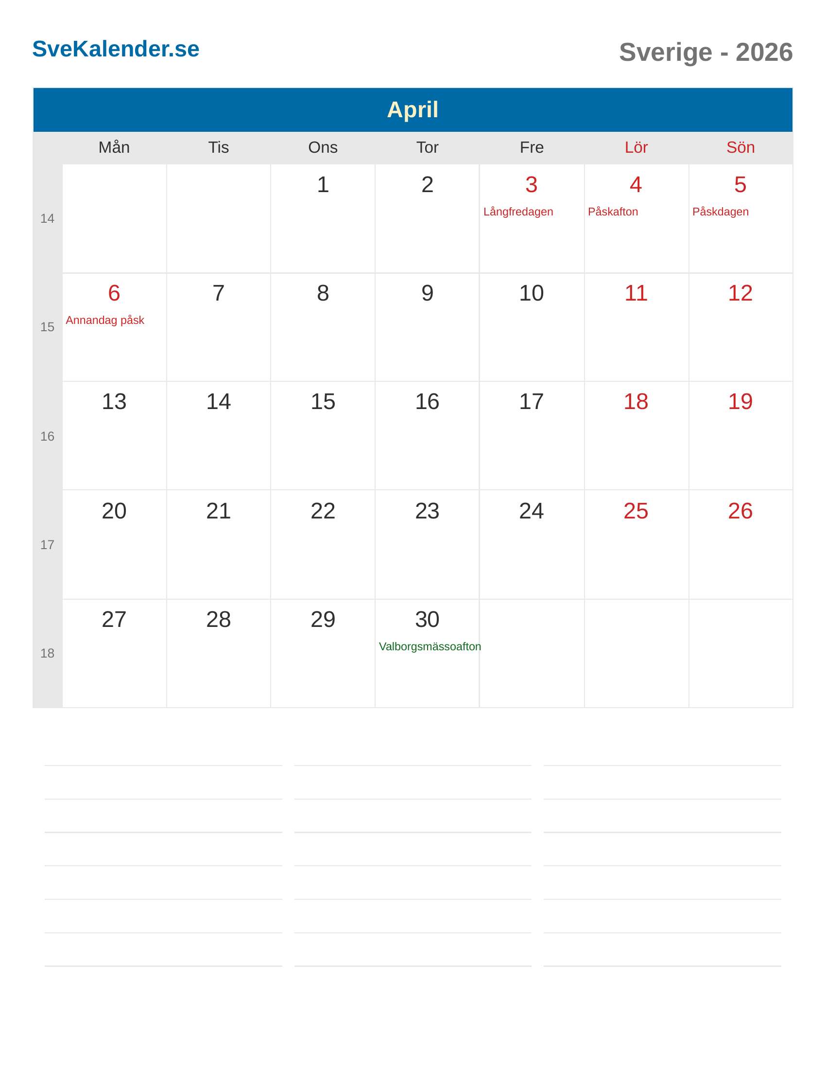 April 2026 kalender - Sverige