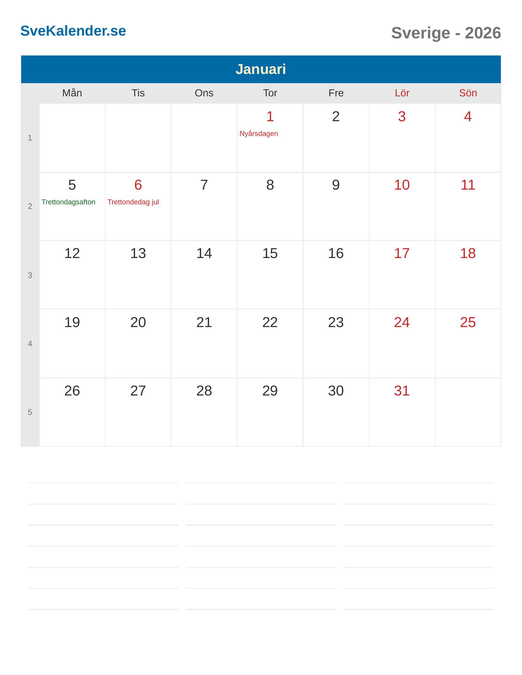 Januari 2026 kalender - Sverige